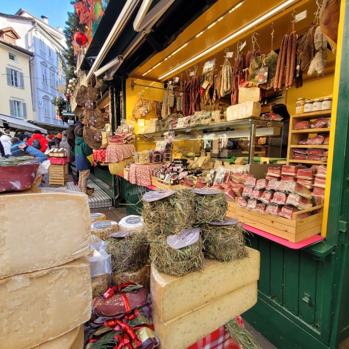 The experience of visiting Bolzano with a local guide will be of great interest, on one hand exploring the well-preserved Medieval city center, with its splendid palaces and churches, and with the welcoming ambiance of its arcades and squares, full of very attractive artisan shops, food stores, and intriguing boutiques. Bolzano dolce-vita-like lifestyle, around Piazza Walther and along Via dei Portici will enchant you. Piazza Erbe with all its food stalls will invite you to shop for speck, sausages, cheese, cookies, local wines and breads.