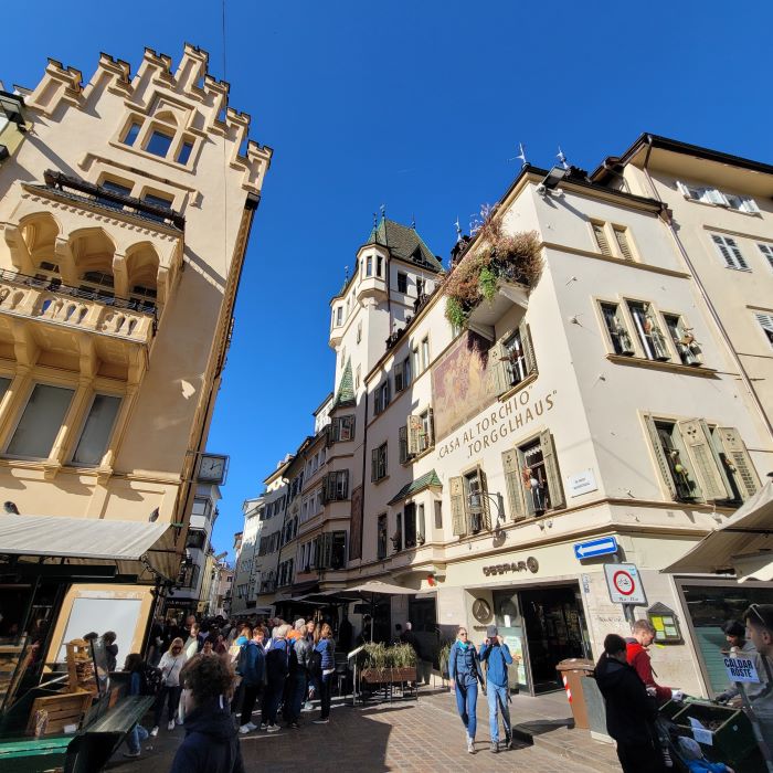 On the other hand, your expert guide will also point out the contemporary aspects of Bolzano, with its pioneering architecture, set in a spotless green context, with its trilingual university, sparkling cultural scene and very high ranking in quality of life (in 2025 only Trento did better)