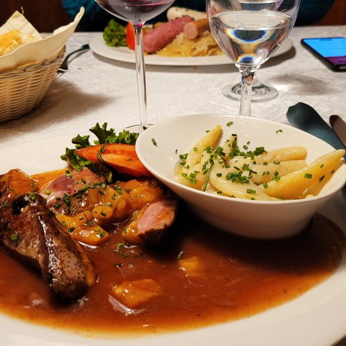 Considering now Bolzano’s gastronomic scene, we can simply say that the blend of Italian and Austrian cuisines, the variety of products the fertile and sunny valleys of Alto Adige provide, result in a mouth-watering offer, that you can pair with the excellent choice of local wines, both red and white. You have a bent for sweets… the local patisserie has much to offer.