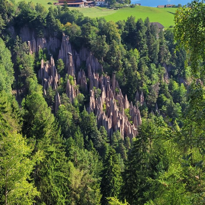 Once we arrive at Soprabolzano we’ll continue to explore on a fairytale train that takes you for a 20-minute ride along the verdant plateau, dotted with the villas of wealthy people from Bolzano. Even Sigmund Freud was captured by the beauty and quiet of this place. At the end of the train journey, we’ll be in Collalbo, where the not to be missed attractions are the world-famous Earth Pyramids, unusual geological formations framed into a jaw-dropping mountain landscape. After a ‘cake and coffee break’ at Collalbo, we descend at sunset into the Bolzano valley.